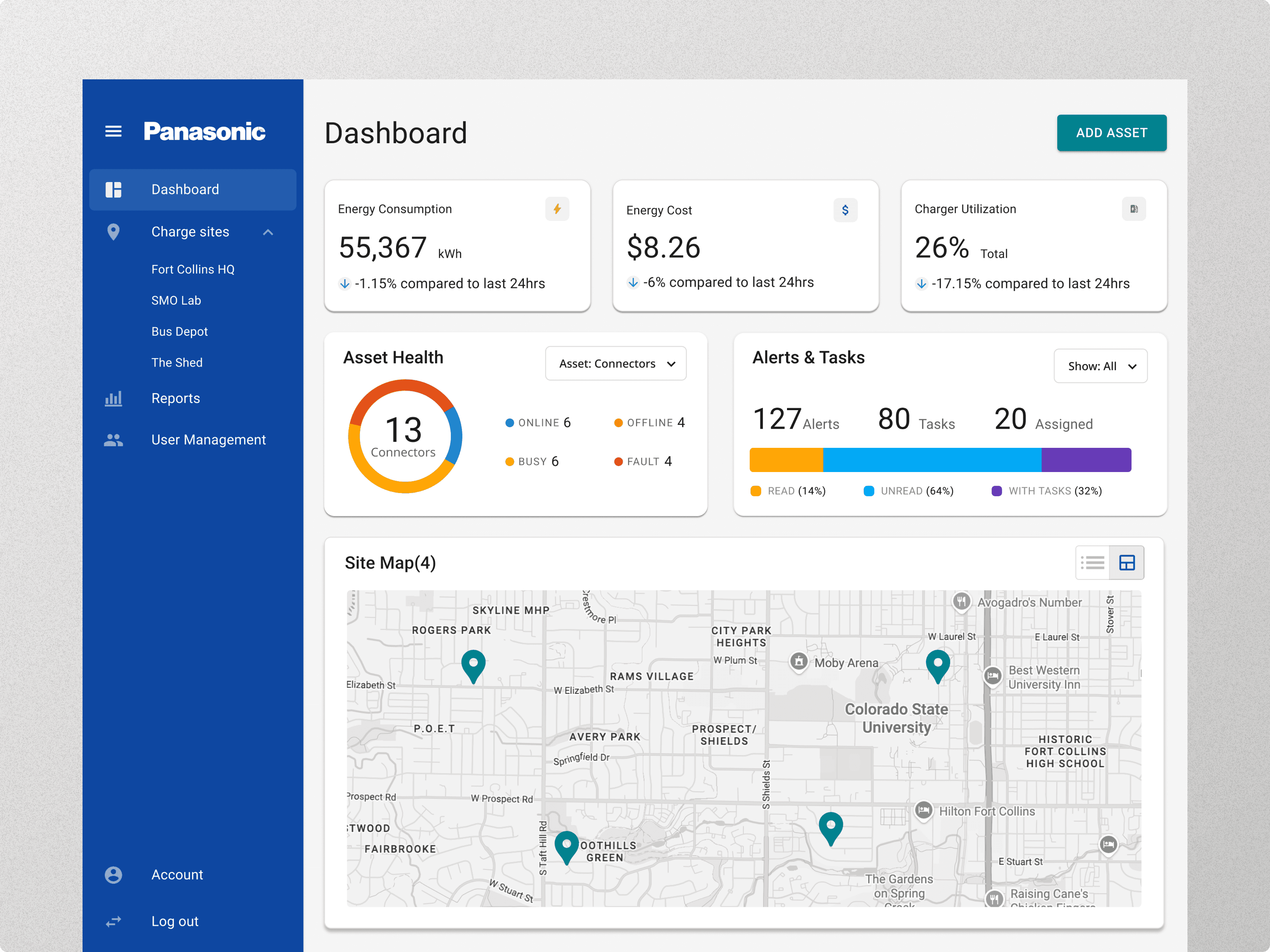 Focused on utilization metrics and billing. Treats charging as isolated from broader fleet operations.